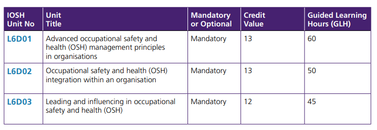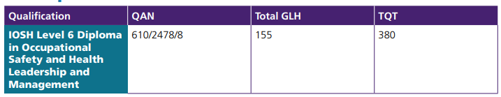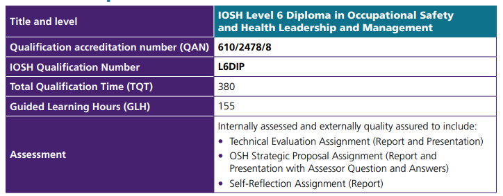 To achieve the IOSH Level 6 Diploma in Occupational Safety and Health Leadership and Management, learners